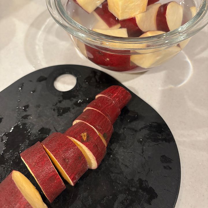 ①まずさつまいもを適当な大きさに切って水にさらします。(めんどくさい時はさらしません笑)