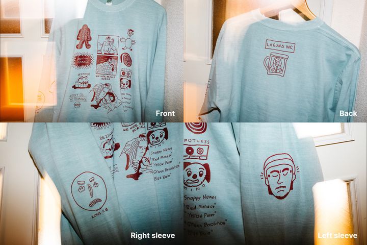 フロントには『エターナル・サンシャイン』の様々なシーンをモチーフとしたイラストを大胆に配置、バック、両スリーブにもワイポイントのイラストをあしらった贅沢な一枚。ボディは味のあるヴィンテージ風、太リブ&ワイドシルエットが魅力のD-FACTORYヘビーウェイトを使用。