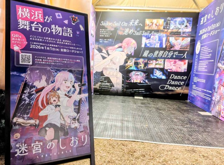 映画『迷宮のしおり』にまつわるブースも設置し、記念撮影を楽しめます。物語では横浜赤レンガ倉庫も登場するそうで、SUZUKAさんとMIZYUさんも映画に出てきた場面を見て「ガチでリアルに描かれてる!」と感激したのだそう。映画公開(2026年1月1日公開予定)が益々待ち遠しくなるスポットは必見。