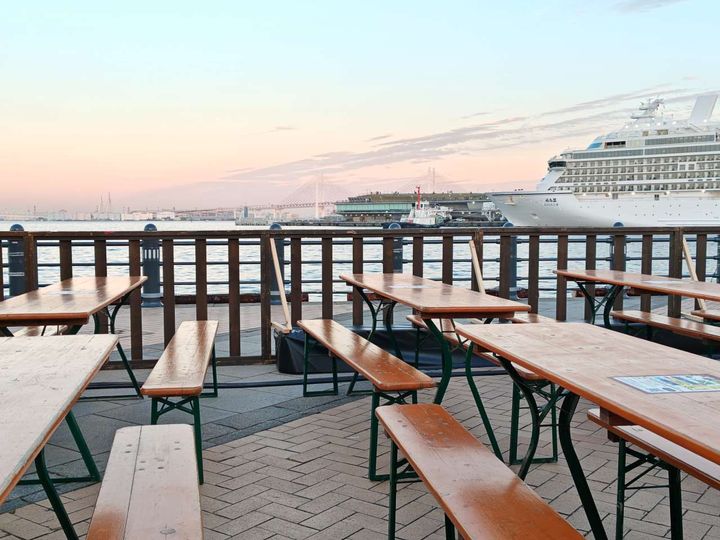海側の広場を中心に、会場内には飲食用のテーブル席も多く設けてあります。