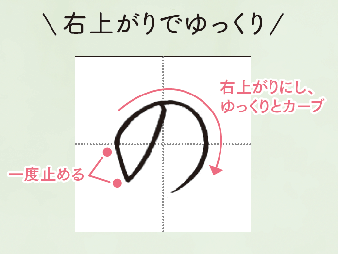 書きはじめは少しだけ右上がりにし、大きくゆるやかなカーブを書くようにします。