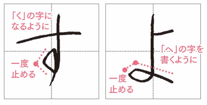 「す」は縦結びなので「く」、「よ」は横結びなので「へ」をイメージしながら書いて。