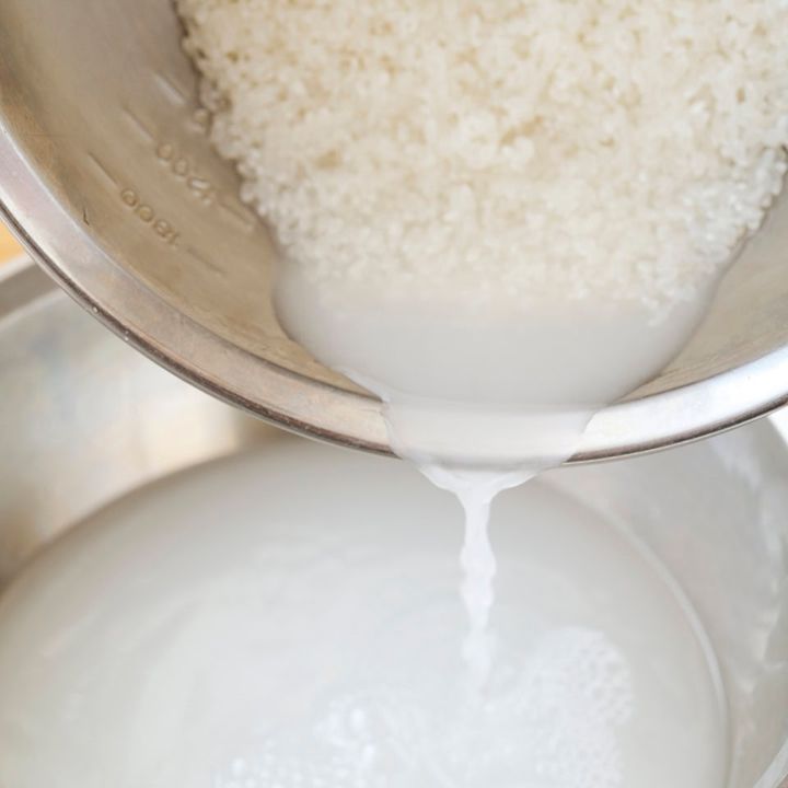 2.水のない状態で、野球ボールを握るくらいに広げた手で優しく研ぐ。水を注いで捨て、また研ぐことを3〜4回繰り返す(水が完全に透き通らなくてもOK)。