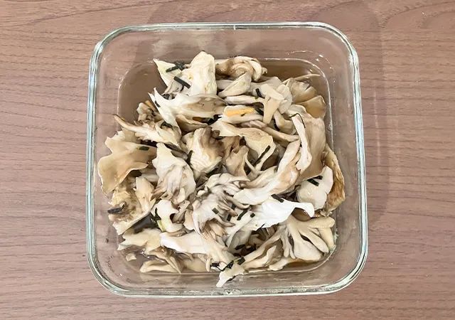 2. マイタケをお茶づけ海苔で和える 包丁不要の即席おかず