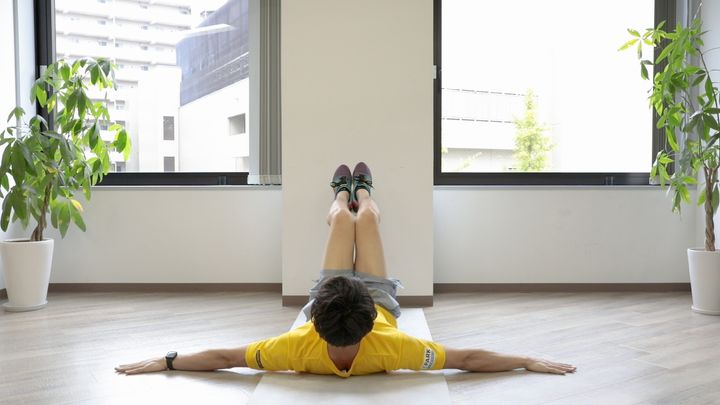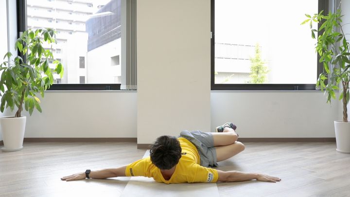 ・床から足だけを浮かせ、首や腕は浮かないようにする