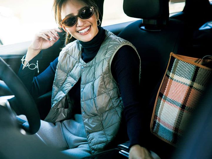 インナーダウンベスト付きコート¥19,800(TAION/ジョワイユ)ニット¥35,200(カオス/カオス丸の内)ニットパンツ¥75,900(エイトン/エイトン青山)ソックス¥3,960(シックストックス/ノーデザイン)バッグ¥53,900(ジャンニ キアリーニ/ジャンニ キアリーニ 銀座店)スニーカー¥39,600(デイト/ティースクエア プレスルーム)サングラス¥50,600(アイヴァン/アイヴァン 東京ギャラリー)グローブ¥17,600(セピエ/ウィム ガゼット 玉川髙島屋S・C店)ピアス¥24,640ブレスレット¥85,800(ともにバルブス/ZUTTOHOLIC)