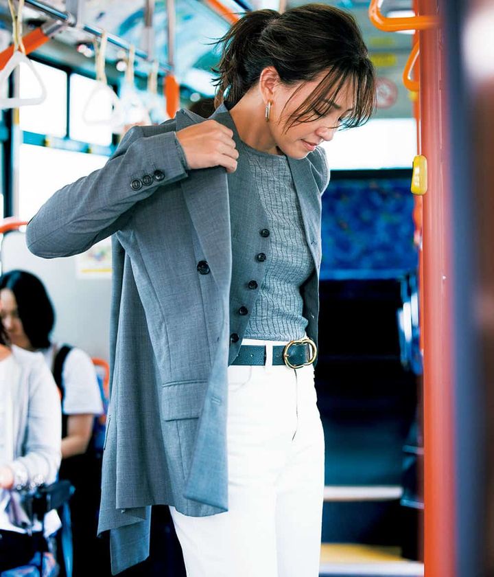 暑くてアウターを脱ぎたいけれどニット1枚じゃシンプルすぎて間がもたない…そんな心配ご無用なのがベスト&ジャケットのツーピース。脱いでもコーデが決まるから、お出掛け先でも気軽に温度調節できて安心です。