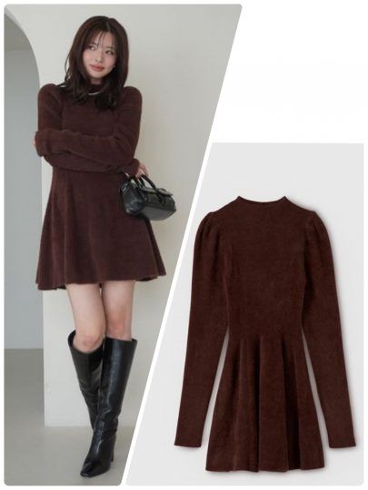 パフスリーブとフィット&フレアシルエットで、スタイルアップ確実。ふわふわとした毛足感のニットは、肌触りも優しく冬のお出かけシーンにぴったりの一枚です。