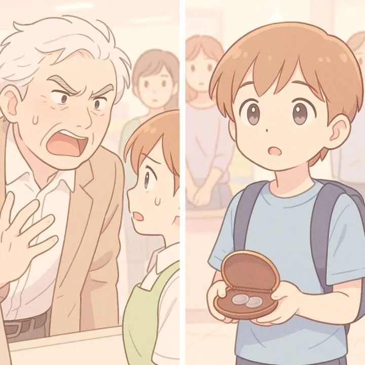 その場が一瞬で静まり返りました。男の子は本気で心配した様子で、自分の小さな小銭入れを開いています。