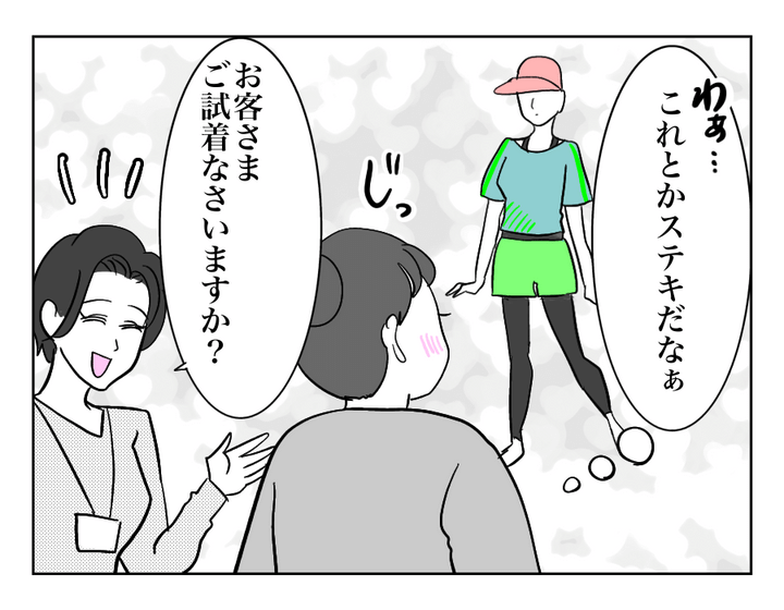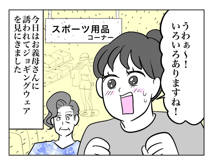 クミさんは、なんとあれからずっと毎日のジョギングが続いているようです。お義母さんはクミさんに無理のない走り方を教え、スポーツ用品店にも誘ってくれました。「可愛い格好でテンションアゲアゲで走るのがハッピー」と言うかつてのお義母さんの言葉、今ならクミさんも理解できるのかもしれません。クミさんの気持ちが変わりつつあるようですね。