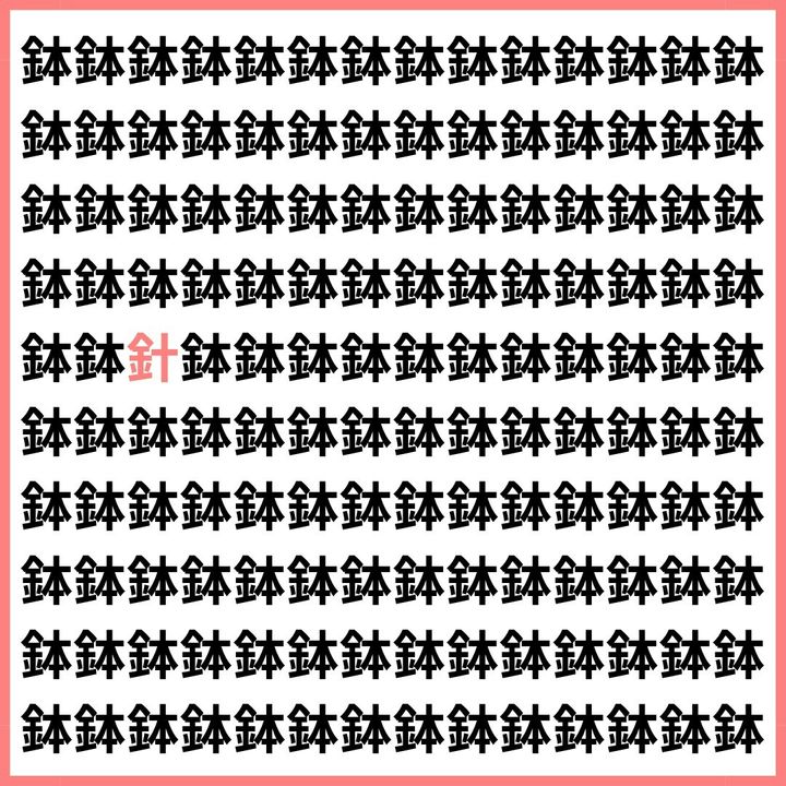 たくさんの「鉢」の中に、1文字だけ違う漢字が混ざっています。