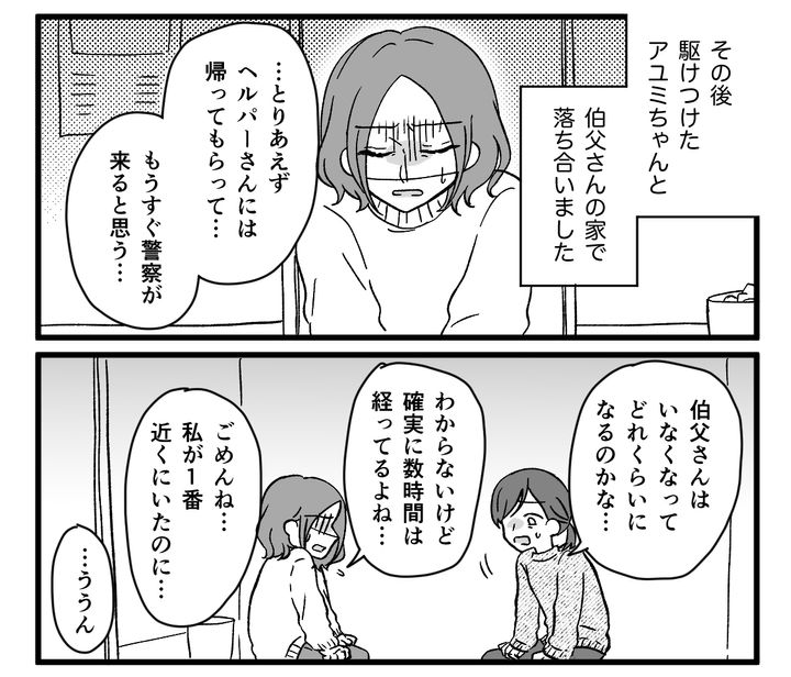 私はアユミちゃんと母からの連絡で伯父の行方不明を知り、慌てて伯父宅へ向かいました。