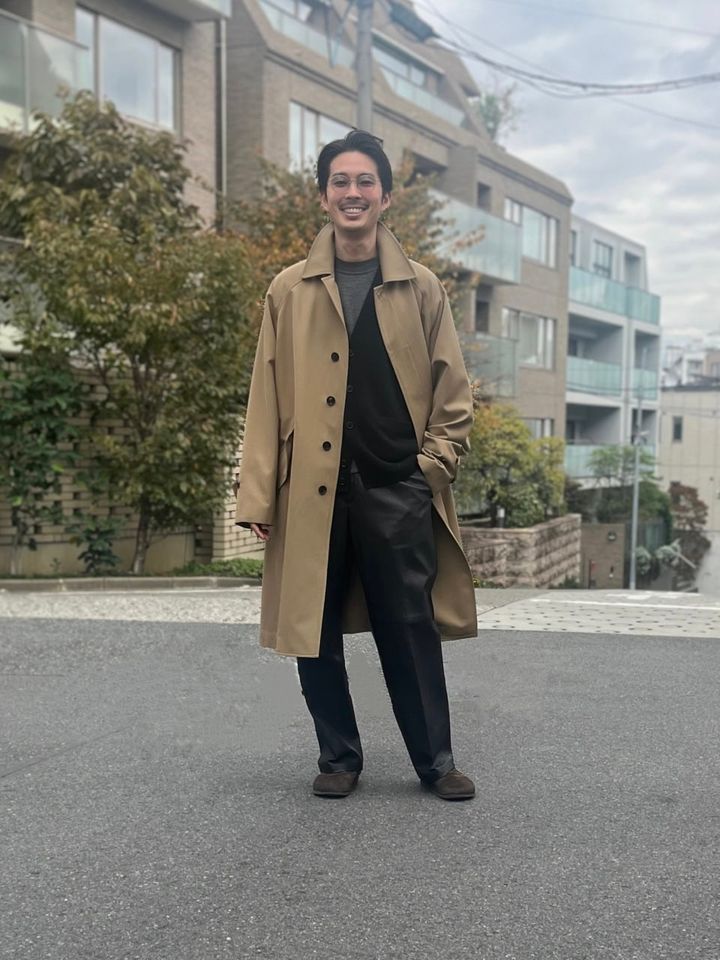 アウターは毎シーズン購入するという井上さんがこの冬選んだのは、 2023年にデビューした【メゾン エ ヴォヤージュ】の一着。「ブランド定番のステンカラーコートはボディや肩まわりがゆったりしていて、オーセンティックなデザインながら今っぽく着こなすことができるんです」