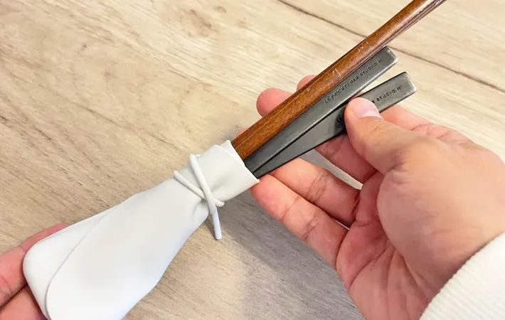使い方は簡単で、内側のスペースにカトラリーを差し込んで縛るだけ。