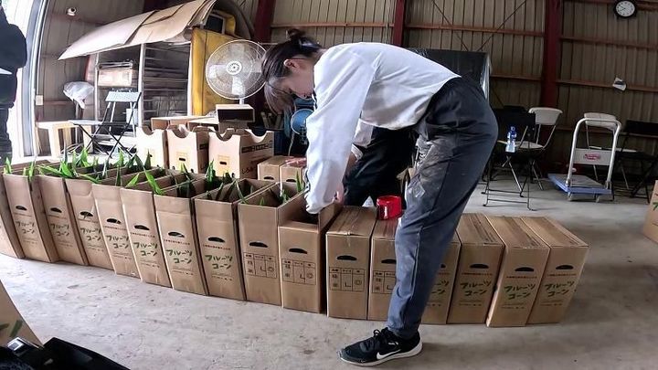 そして次は出荷するための梱包作業です。この日出荷するのは200箱。1箱ずつ、手作業で梱包もしていきます。