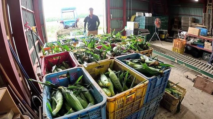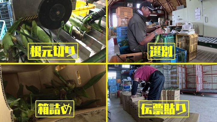 トウモロコシは収穫したらすぐに箱詰めをするのかと思っていましたが…実はこの農園では違います。