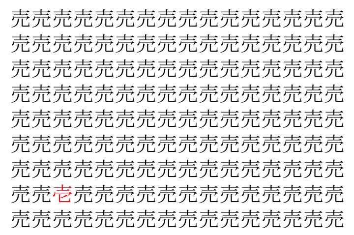 【脳トレ】「売」の中に紛れて1つ違う文字がある!?あなたは何秒で探し出せるかな??【違う文字を探せ!】