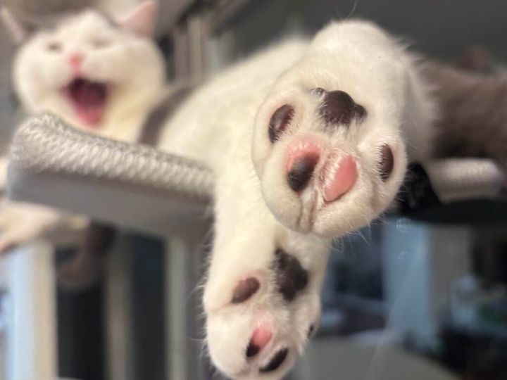 そして自慢のアポロ肉球! 兄ちゃんとお揃いなの。ポップコーンの香り付きだよ!