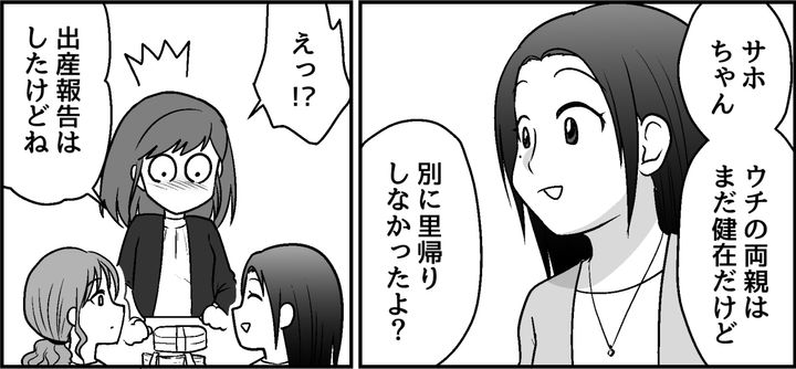 私はサホ。夫ケイスケと結婚して、現在妊娠5ヶ月です。両親がすでに他界しており、ありがたいことに義両親が「なんでも頼ってね」と言ってくれました。しかしケイスケが産後の「里帰り」をさせてもらうお願いをしたところ、義実家に住む独身の義妹ナナコさんから「赤ちゃんがいると困る」と抗議されたそうです。私はやるせない思いを会社の先輩たちに聞いてもらいました。ただ先輩たちからは「里帰りしなきゃダメなの?」と質問され……。