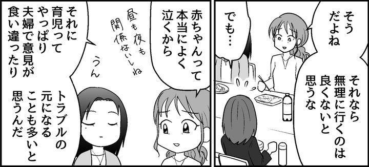 先輩たちからは里帰りをせず、夫婦2人だけで乗り切るための方法をいろいろ提案されました。「自動調理鍋を買ってみたら、材料を入れるだけで一品できてすごく楽だったよ? お金はかかるかもしれないけど、いろんな選択肢があるよ」