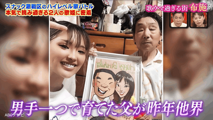 スナック激戦区・大阪府東大阪市の布施には、歌が上手過ぎる夜の歌姫たちがいる。その1人は、29歳の“小悪魔お姉さん”。実は彼女は、男手一つで育ててくれた父親を2024年に亡くし、ある決意をしていた……。