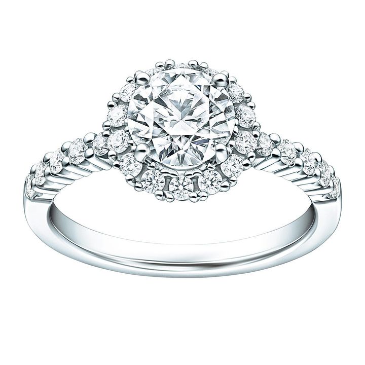 センターストーンをメレダイヤモンドが取り囲む、輝きのオーラをまとったかのようなリング。“ブリッランテ ソリティア ラウンド ブリリアントリング”[Pt×ダイヤモンド、センター1.05ct]¥2,915,000(TASAKI tel.0120-111-446)