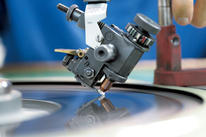 ダイヤモンドのカット・研磨も自社工房で。完璧なカットになるまで、プロポーションを測定しては研磨する作業が繰り返されます。