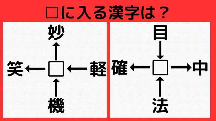 【漢字パズル】正解の漢字はたったひとつ!□妙、軽□、機□、□笑・・・!?