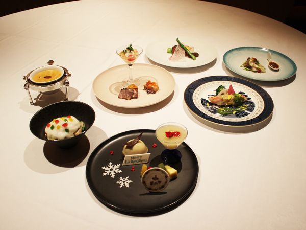 牛肉、ウニ、カニ、あわびなど、豪華食材を使ったクリスマスにぴったりのゴージャスなコース。