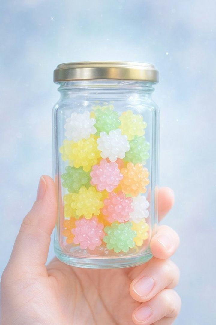 最近、娘にちょっとしたお守りをつくった。特別に瓶に入れ替えた金平糖。