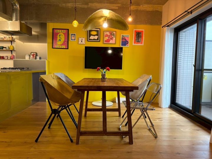 金運昇り龍にしたくて、壁の一面は黄色に。