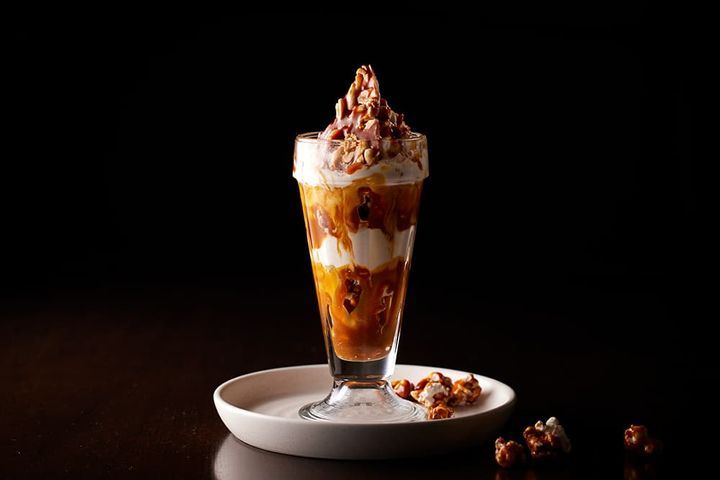 コースの締めくくりには、アメリカンダイナーを思わせる「クラッカージャックサンデー」。キャラメルポップコーンとピーナッツブリトルを大胆に重ね、遊び心とボリュームを詰め込んだ一品です。
