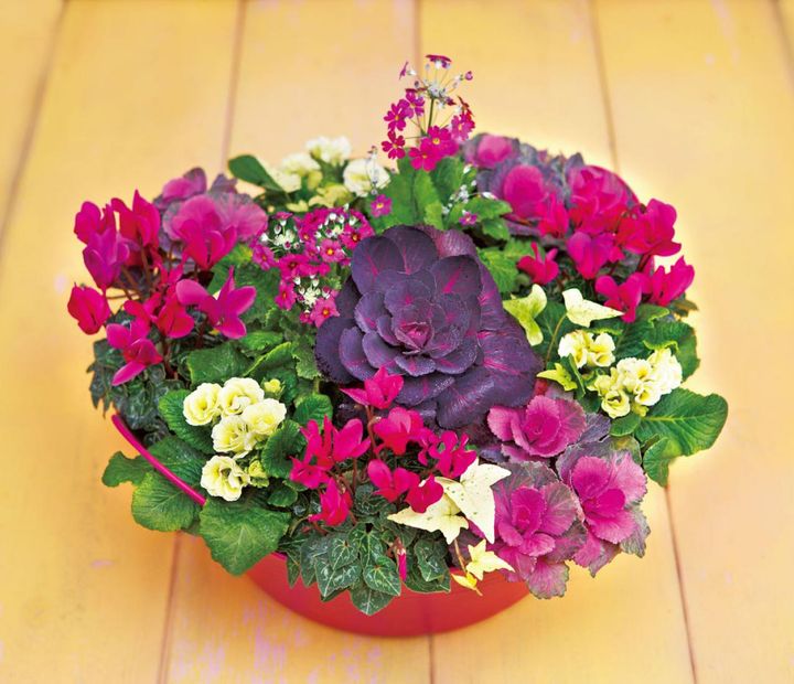 2. 冬の庭がぱっと華やぐ!「シクラメン、プリムラ、ハボタン」の寄せ植え【ガーデニング】