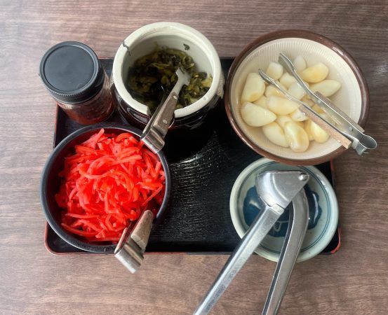 トッピングサービスも充実していましたよ! 紅ショウガや高菜、ニンニクなど、いろいろ味変をたのしめそうです。
