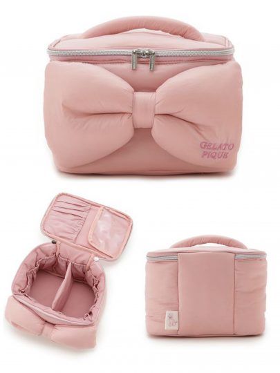 もこもこした中綿入りのバニティポーチは大きなリボンが主役。