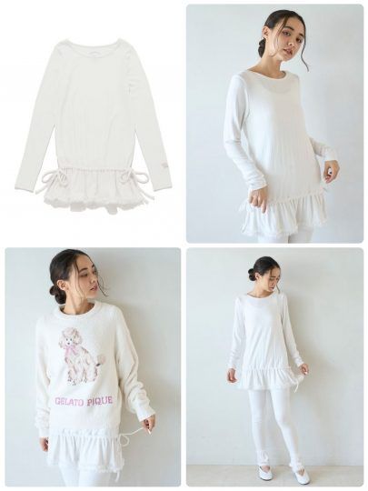 ロンTはカットソーにチュールとフリルをあしらい、ソフトな肌触りが特徴。ヒップまで隠れる長めの丈感で、紐を絞ってサイズ調整したり、「」とレイヤードしたり、コーデの幅が広がります。