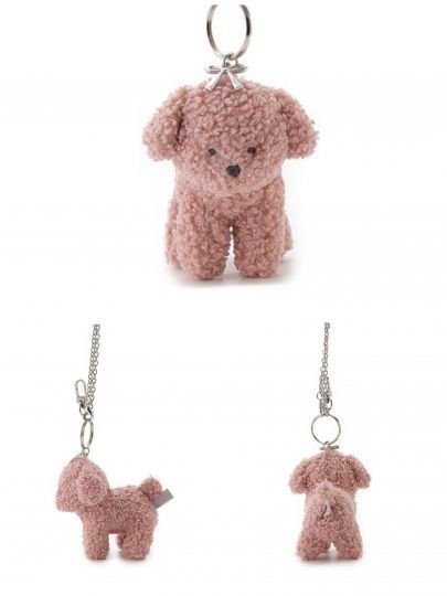 ピンクのボアに、つぶらな瞳が愛らしいプードルモチーフのぬいぐるみチャーム。縦10×横10㎝サイズです。