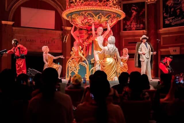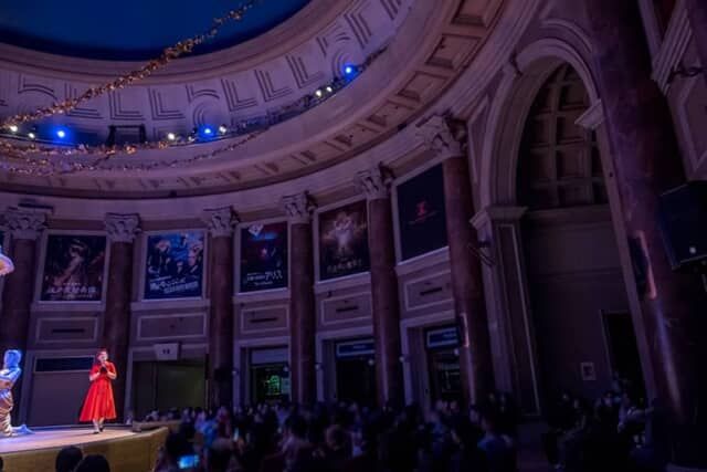 特に没入体験をウリにするイマーシブ・フォート東京は、ただショーを観るだけでなく、演者とゲストが会話できる機会もあります。席の近くに演者が出没することも多く、わたしたちは町の住人になった気分で物語に巻き込まれていきます。