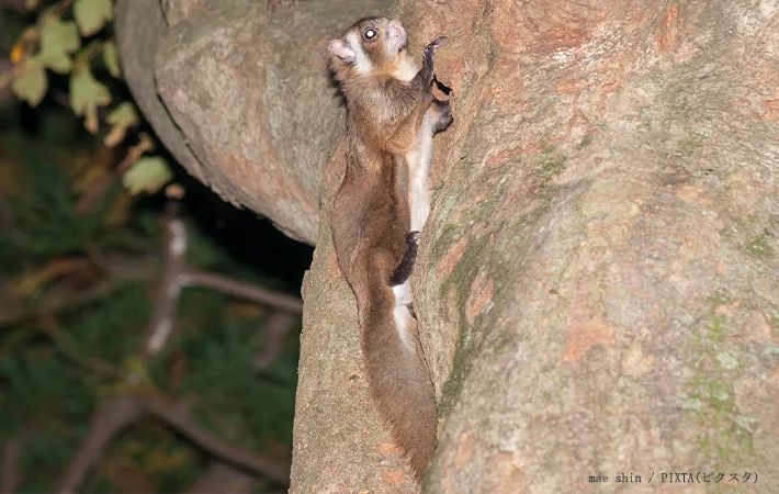 両者ともに、脚を広げて木々の間を滑空することができ、『空飛ぶ哺乳類』と呼ばれているとか。