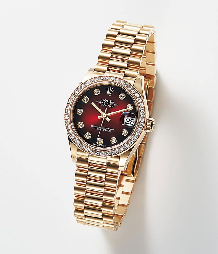娘に「この時計の似合う母」の記憶を刻みこみ「いつかは私も」と夢を与えることのできる華やかさ抜群のニューモデル。オンシーンはもちろん日常にさらりとつけても素敵。オンブレダイアルは中心のカラーが徐々に暗くなり、縁に近づくと漆黒に。これは1980年代に発表され、その系譜を受け継いだデザイン。ベゼルのダイヤモンドははめ込む土台を手作業で掘り出し、セットされているので堅牢にして煌めきも抜群。母としての貫禄の記憶を娘に刻み、受け継がせるのに相応しいモデル。