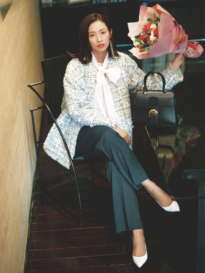 ジャケット¥39,600(アルページュストーリー)ブラウス¥26,950(スーペリアクローゼット/フランドルカスタマーサービス)パンツ¥29,700(styling//styling/ ルミネ新宿1店)バッグ¥1,145,100(デルヴォー)パンプス¥108,900(ジャンヴィト ロッシ/ジャンヴィト ロッシ ジャパン)ピアス¥8,800(ロニ)