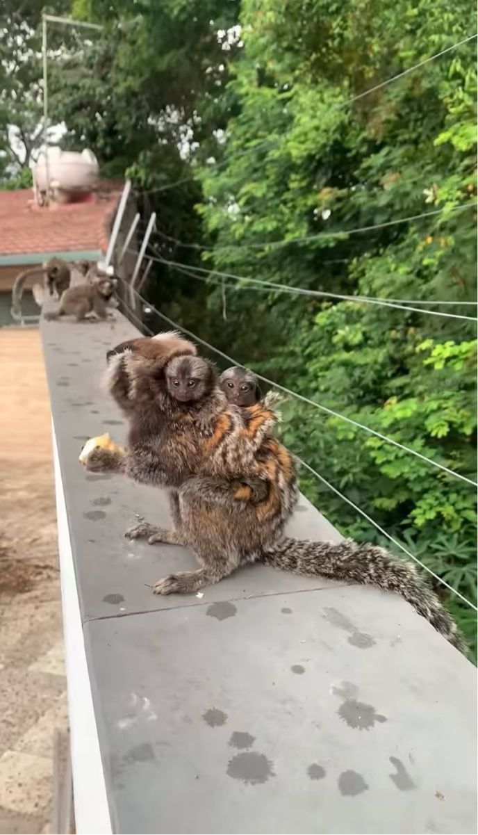 かわいい赤ちゃんたちを背中におんぶして、おやつをもぐもぐするマーモセット。 ブラジルで目撃されたその微笑ましい光景は、こちらの動画からご覧いただけます。