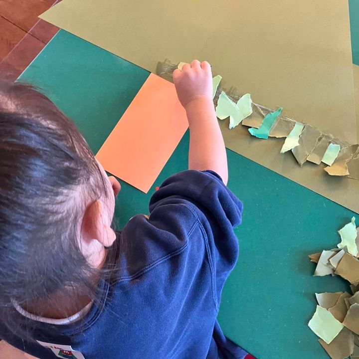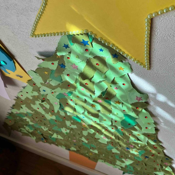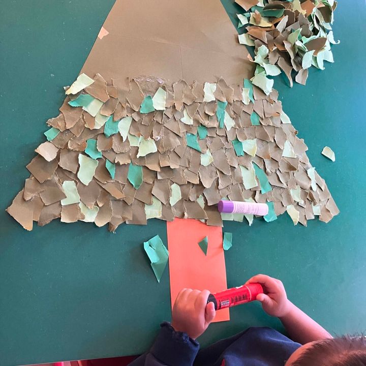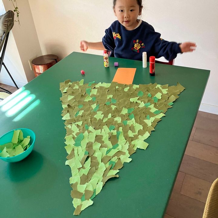 3. 100均材料4つで完成!2歳児と作る「ちぎり絵クリスマスツリー」が想像以上にかわいい | HugMug