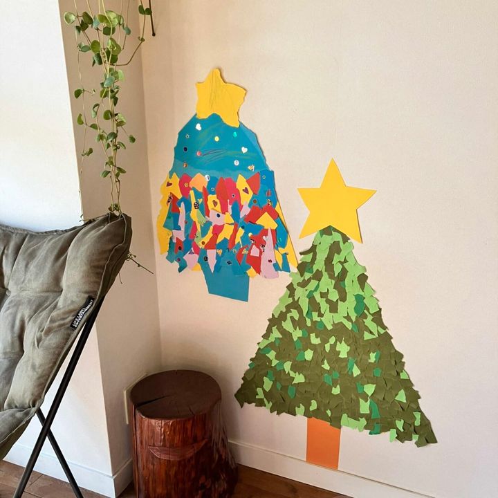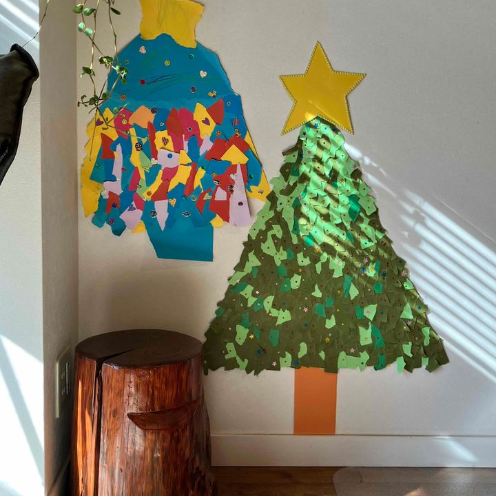 100均材料4つで完成!2歳児と作る「ちぎり絵クリスマスツリー」が想像以上にかわいい | HugMug