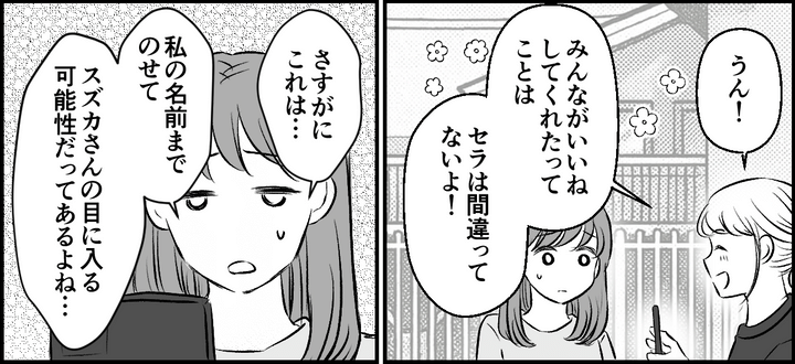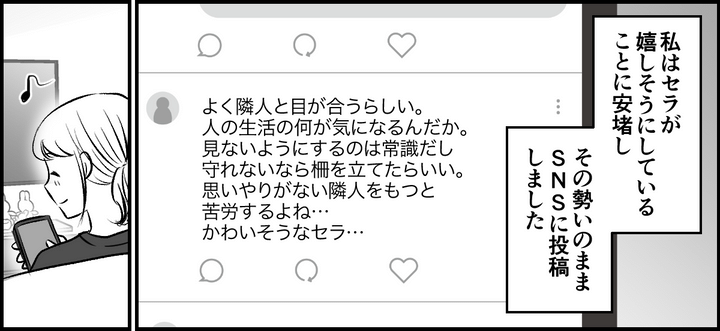 だから、セラの表情や反応を見ながらスズカさんが悪いと断言したし、もっとセラの味方だとわかってもらうためにSNSにもあげました。