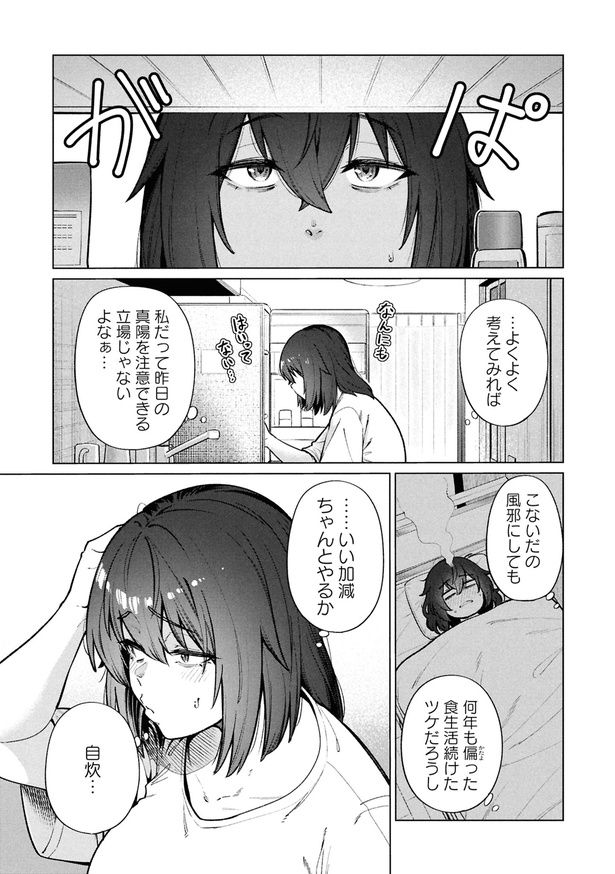 就職浪人を経てやっと入社した会社で踏ん張って働いていた柊は、入社して3年で心身ともに疲弊して退職。無職生活も気づけば半年になっていた。食事に美味しさは求めず、カップ麺を食べながら荒れた部屋で無気力な毎日。どんなに憂鬱でも、抗えない空腹と向き合いながら、少しずつ前へ進んでいく。鬱、孤独、たまに飯――。心も体も疲れ切った限界独身女子が、ゆっくりと前に進む様子を描いた『限界独身女子(26)ごはん』。最新4巻から新規エピソードを追加してお届けします!
