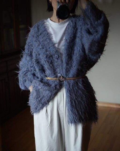 【40代50代におすすめ2】フェザーヤーンカーディガン×細身インナーできれいめに