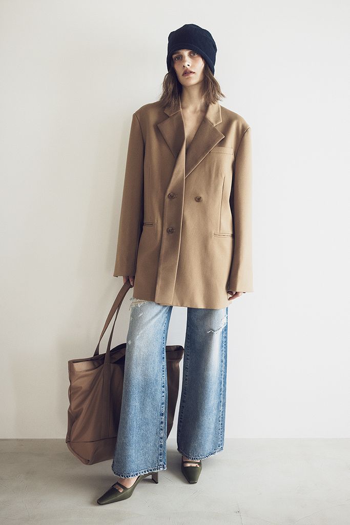 インフルエンサーとして活躍し、モードとストリートを融合させたスタイルが得意なアレッサ。ジャケットをさっそうと1枚でまとった潔さと軽やかさがデニムの洗練度を上昇。