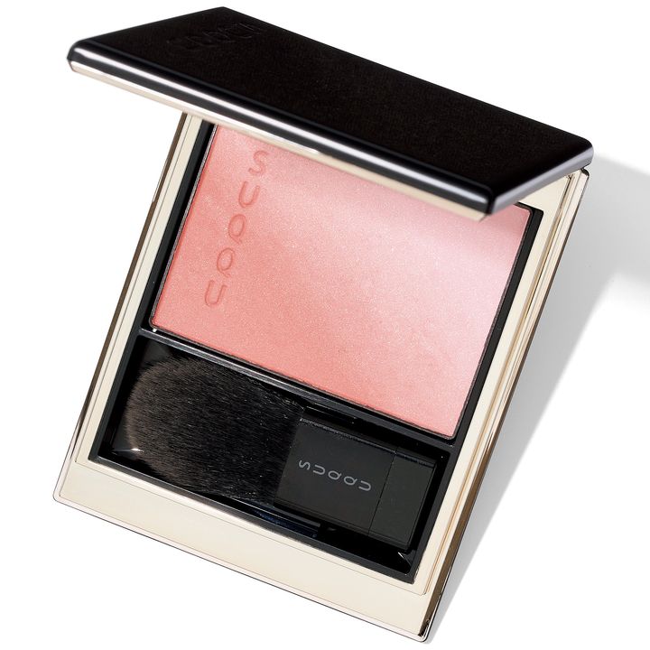 微かに輝くラメを仕込んだ、肌に溶け込むメープルピンク。粉感ゼロのシルキー質感で肌なじみ抜群。RMK ピュア コンプレッション ブラッシュ 16 ¥3,630(RMK Division)