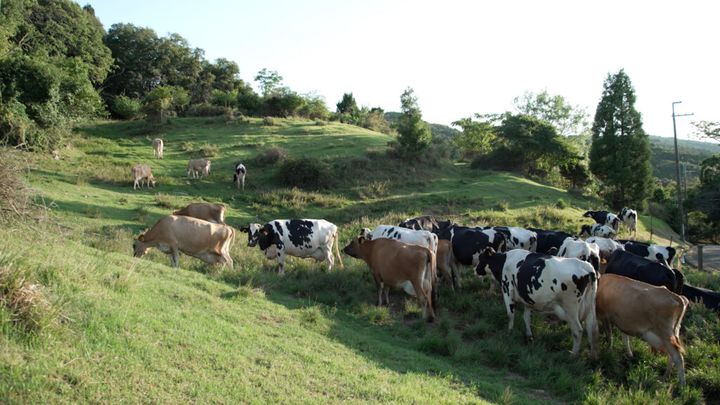 アイスクリームも、このパフェに欠かせないこだわりの素材。真壁さんが「柿の甘みを引き立てますね」と唸ったアイスクリームは、自然放牧でのびのび育った牛のミルクから作られていた。東京ドーム約6個分の広さだという和歌山県海南市の黒沢牧場は、牛舎のない牧場だ。「牛たちは好きな場所でゆっくりと過ごしています」と語るのは酪農家の上芝さん。午後2時45分になると、搾乳の小屋へと集まってくる牛たち。搾りたての牛乳をすぐにアイスへ加工することで、濃厚なのに後味さっぱりに仕上がる。
